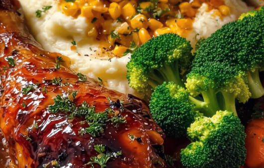 A juicy, glazed roasted chicken drumstick with a rich, glossy sauce.