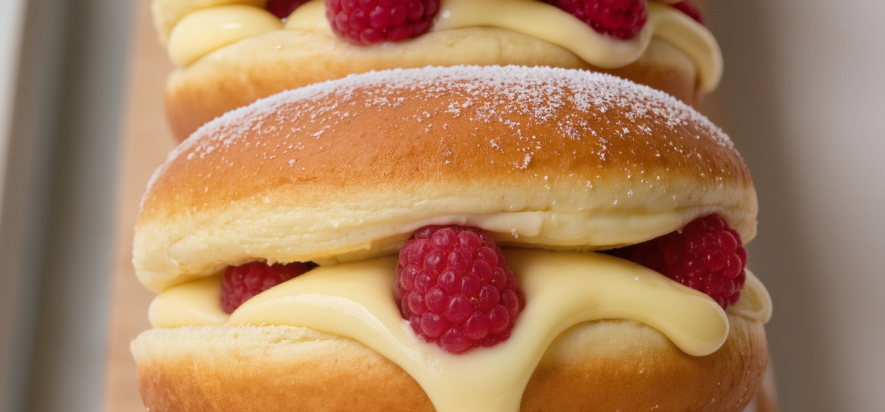 <p data-start="0" data-end="319">These are soft, fluffy brioche-style donuts filled with