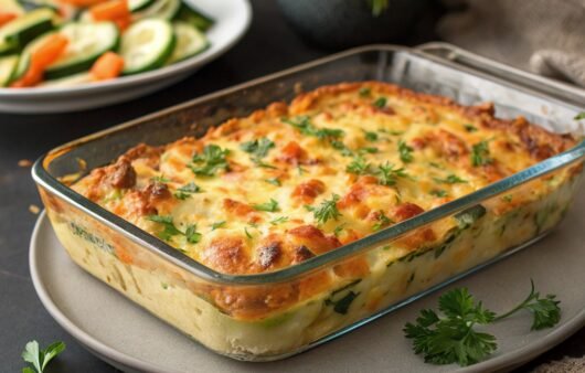 A golden, cheesy vegetable bake bursting with colorful grated veggies like carrots, zucchini, and potatoes. Crispy on top and creamy